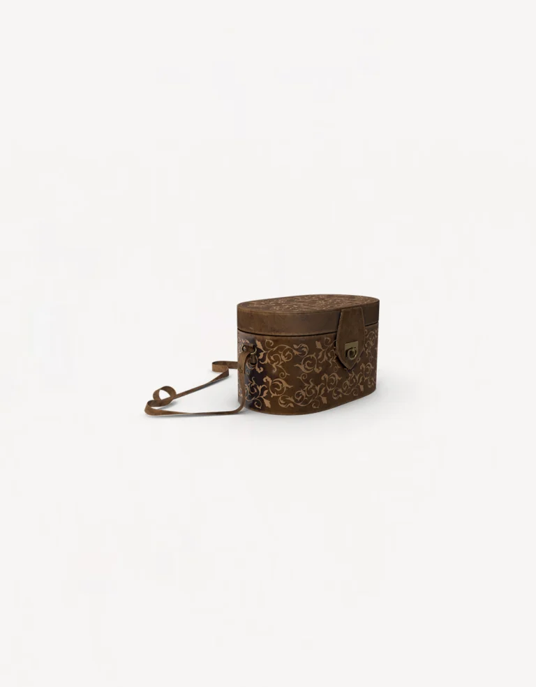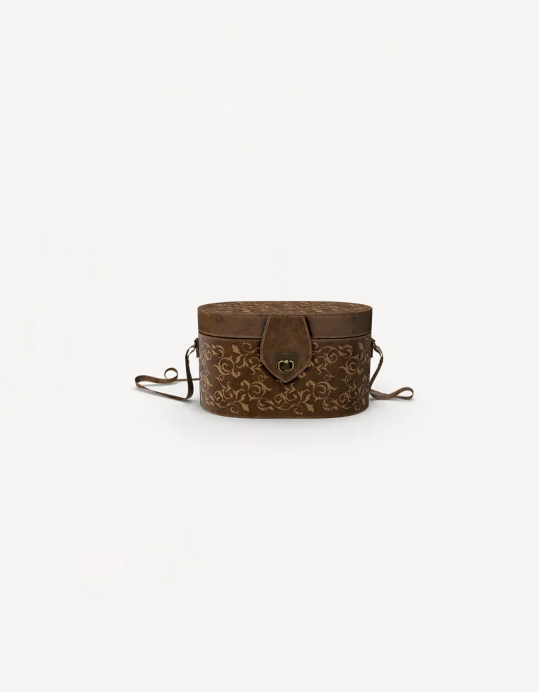 This vintage-inspired shoulder bag features an embossed design with a structured oval shape. With a secure buckle closure and an adjustable strap, it offers both elegance and practicality for everyday use or special occasions.